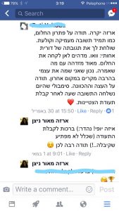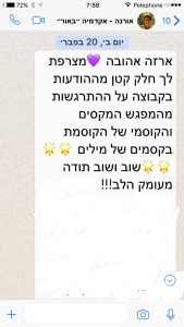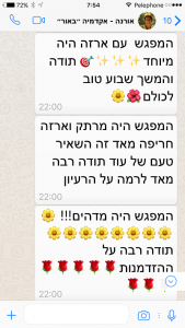,,ארזה אהובה, מצרפת לך חלק קטן מההודעות בקבוצה על ההתרגשות מהמפגש המקסים…שוב ושוב תודה מעומק הלב!!!”